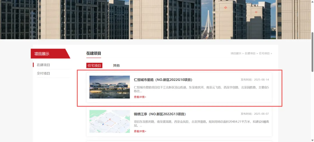 2、“仁恒城市星皓”,是南京江北新区直管国企“南京新居建设集团有限公司”开发的楼盘。下图是该企业官网信息公示的已开发项目: