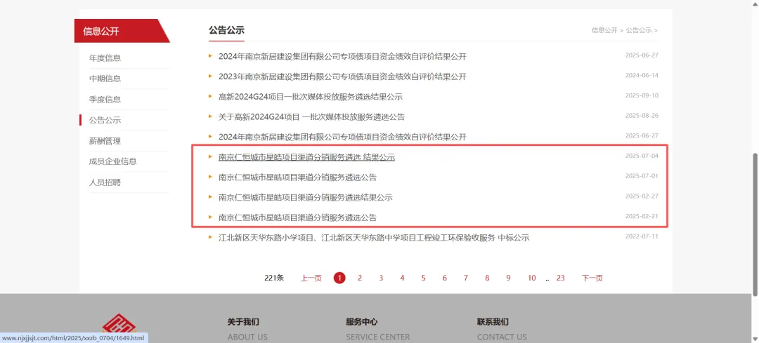 网址:http://www.njxjjsjt.com/html/xxgg/xxzb/2、从企业网站公示结果看,2025年2月21日招标分销渠道,2月27公布中标结果。