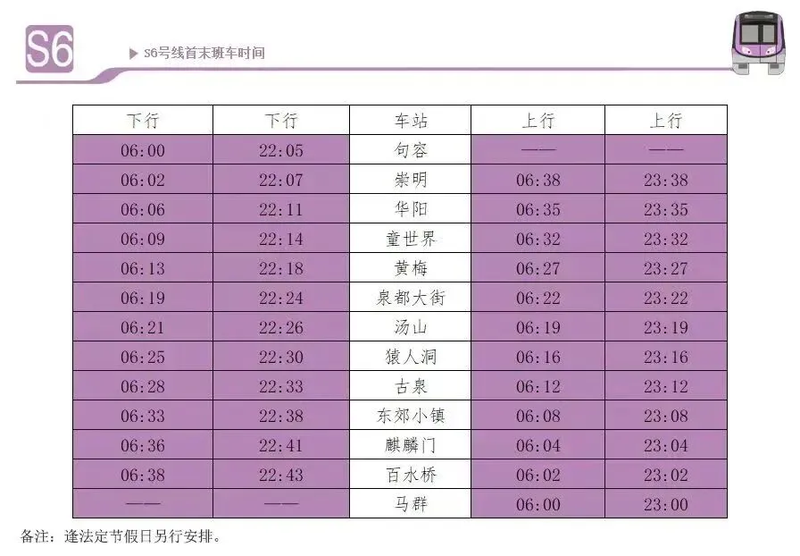 南京地铁S6号线是南京地铁开往句容的线路。