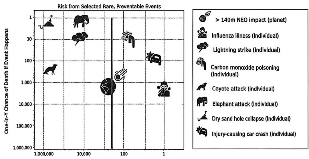 [导语]这是一篇说明文。文章通过一项研究,将小行星撞击地球的概率与其他更常见的事件概率进行对比,旨在帮助人们理解这种风险,并强调了相关研究的重要性。