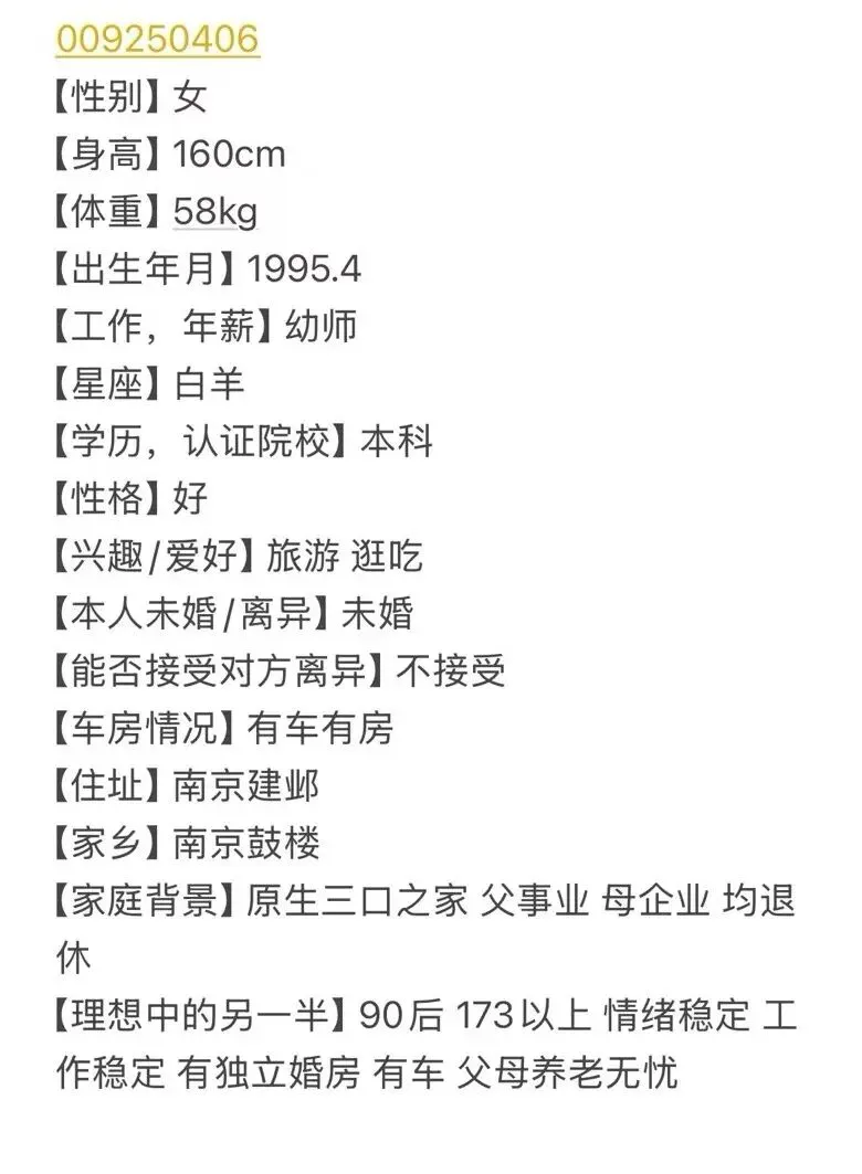>南京脱单|95年,女,身高160,本科学历,幼师工作,南京本地人,目前在建邺区