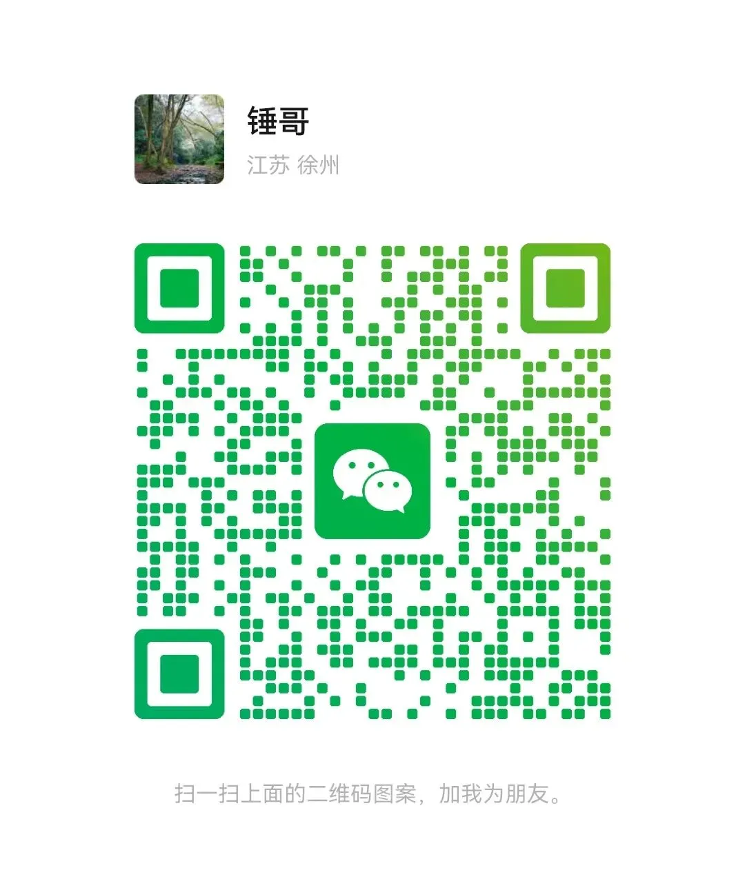 用微信扫描如下二维码,可以添加锤哥微信并聊之。