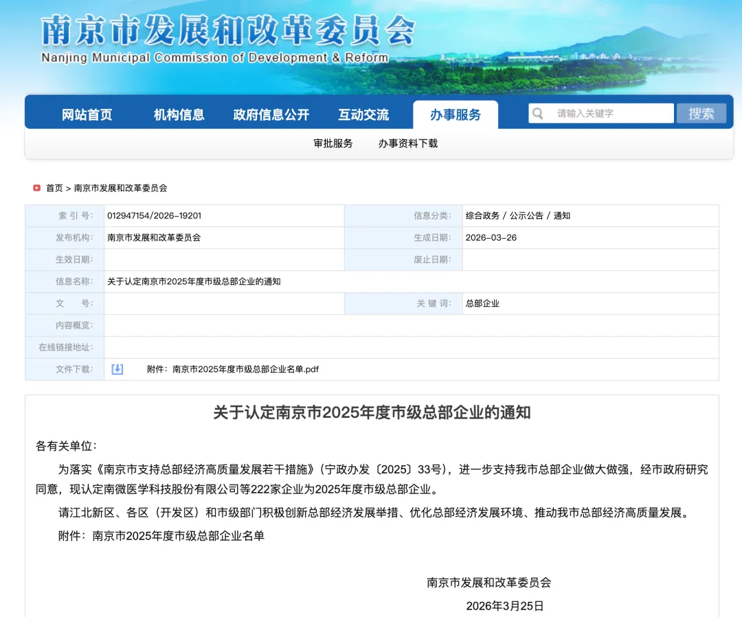 近日,南京市发展和改革委员会发布《关于认定南京市2025年度市级总部企业的通知》,通达海凭借综合实力、创新能力和发展质效,成功入选南京市2025年度3A总部企业。
