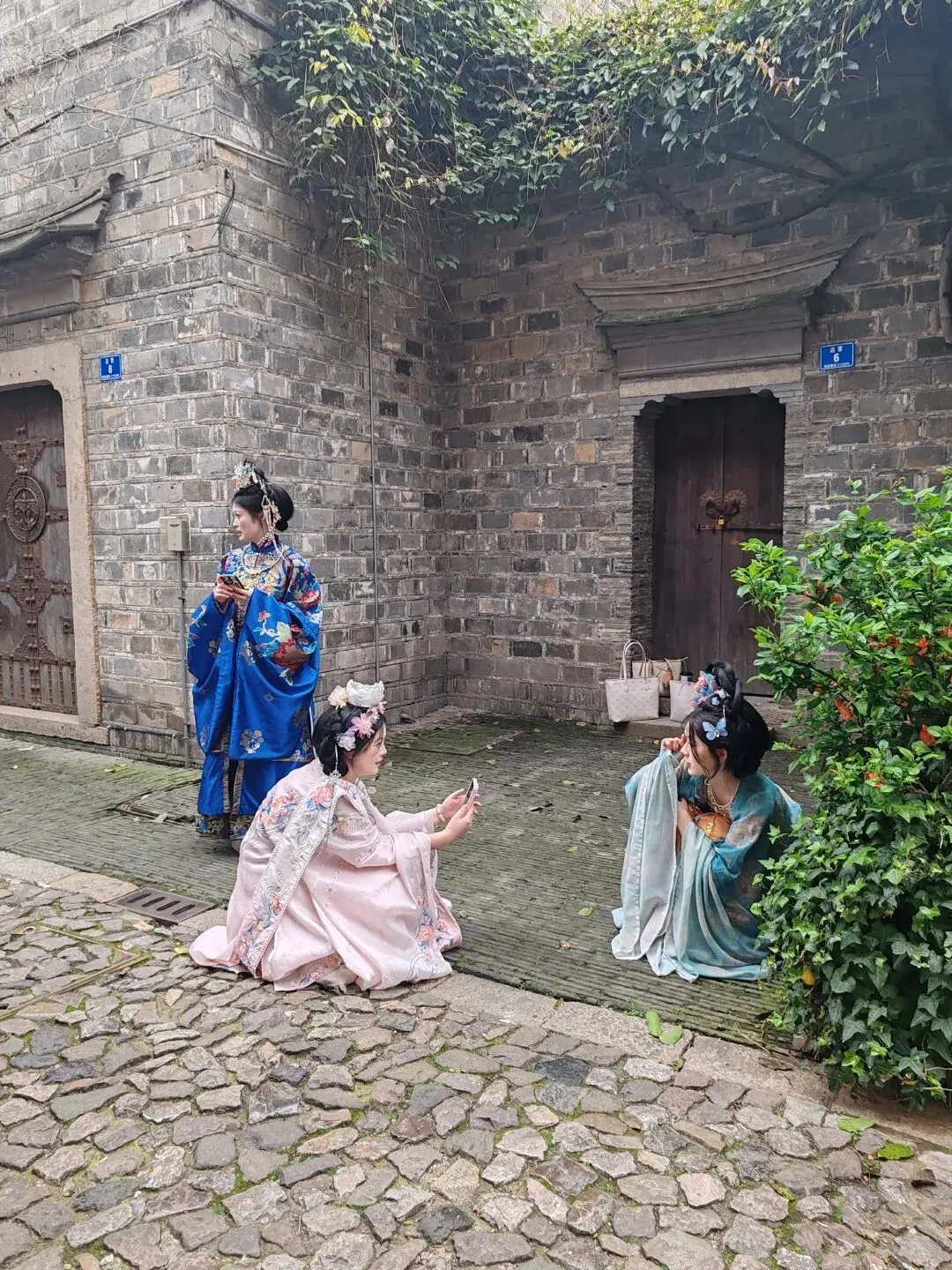 老门东的紫藤花瀑下,年轻女孩们穿着色彩鲜艳的汉服举着手机,笑着、欢悦着,和那只网红橘猫灯合影。
