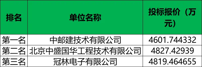 中邮建技术有限公司:原隶属于中国邮电系统,具有深厚的通信与信息化背景,此次以4601.74万元的最低价中标,报价低于第二名约225万元,展现出极强的价格竞争力。