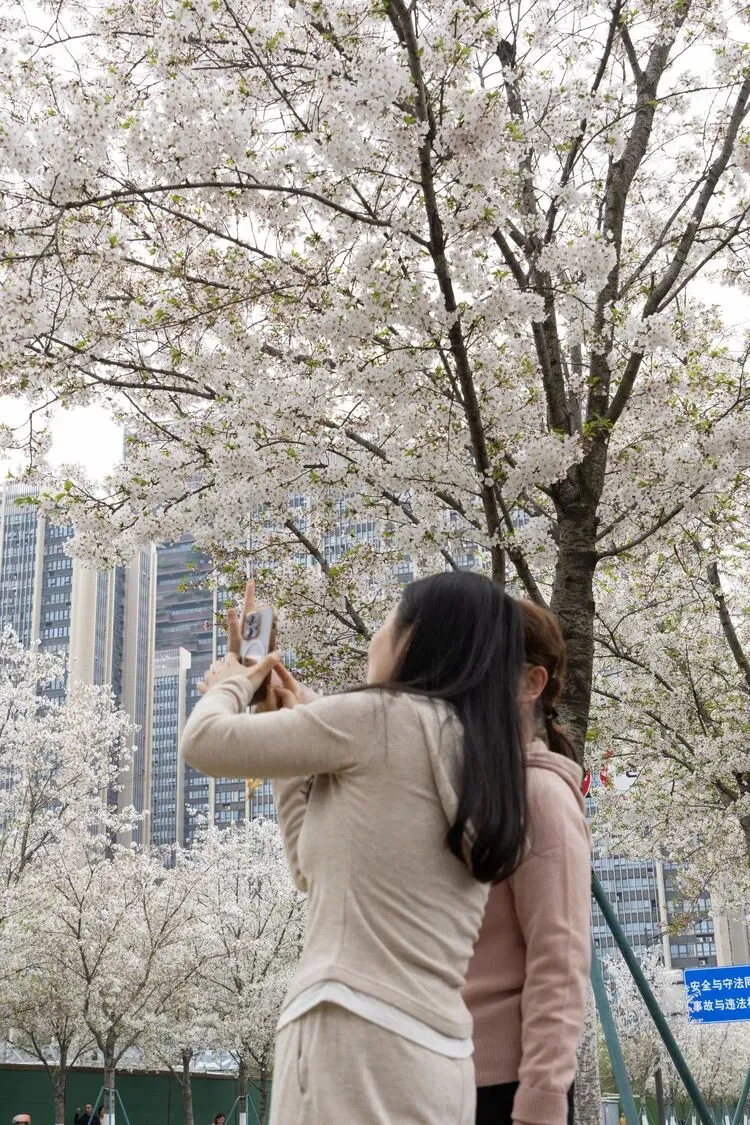 昨天虽然不是节假日,可是来这里赏樱打卡的人还不少。