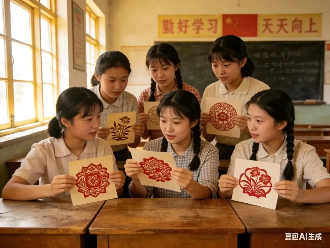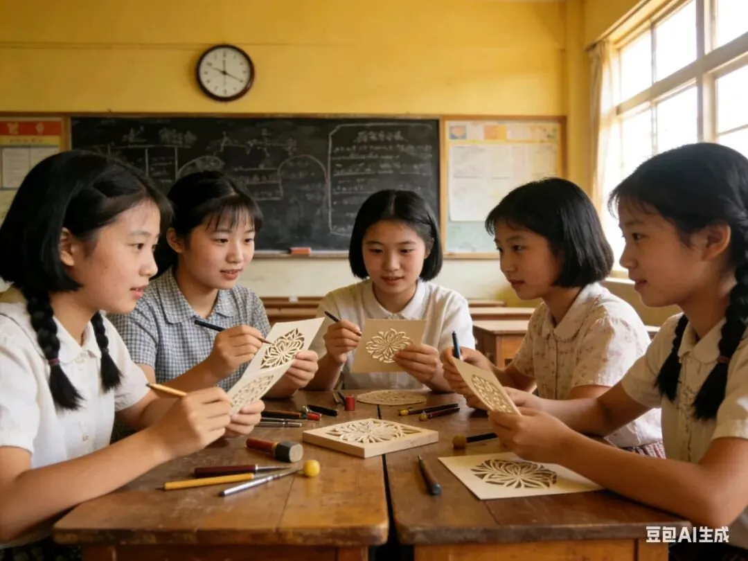 那时候大家都觉得刻花是女孩子的事,说来也有意思,我们班偏偏有个男同学,也特别喜欢。而且他静下心来刻,比我们女生还细心,刻出来的刻花有模有样,格外好看,成了班里的小高手。