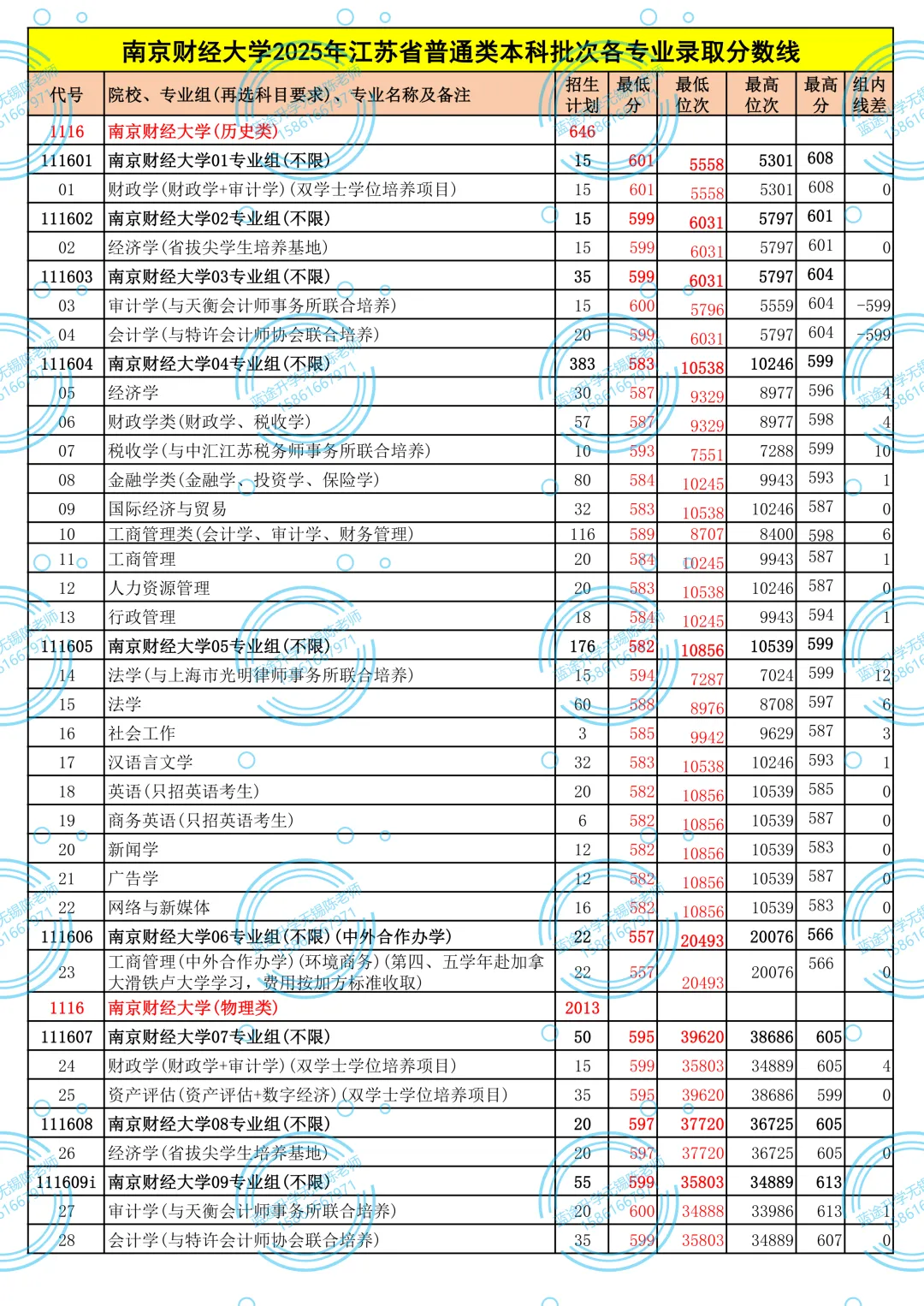 >南京财经大学2025年江苏省本科批次各专业录取分数线
