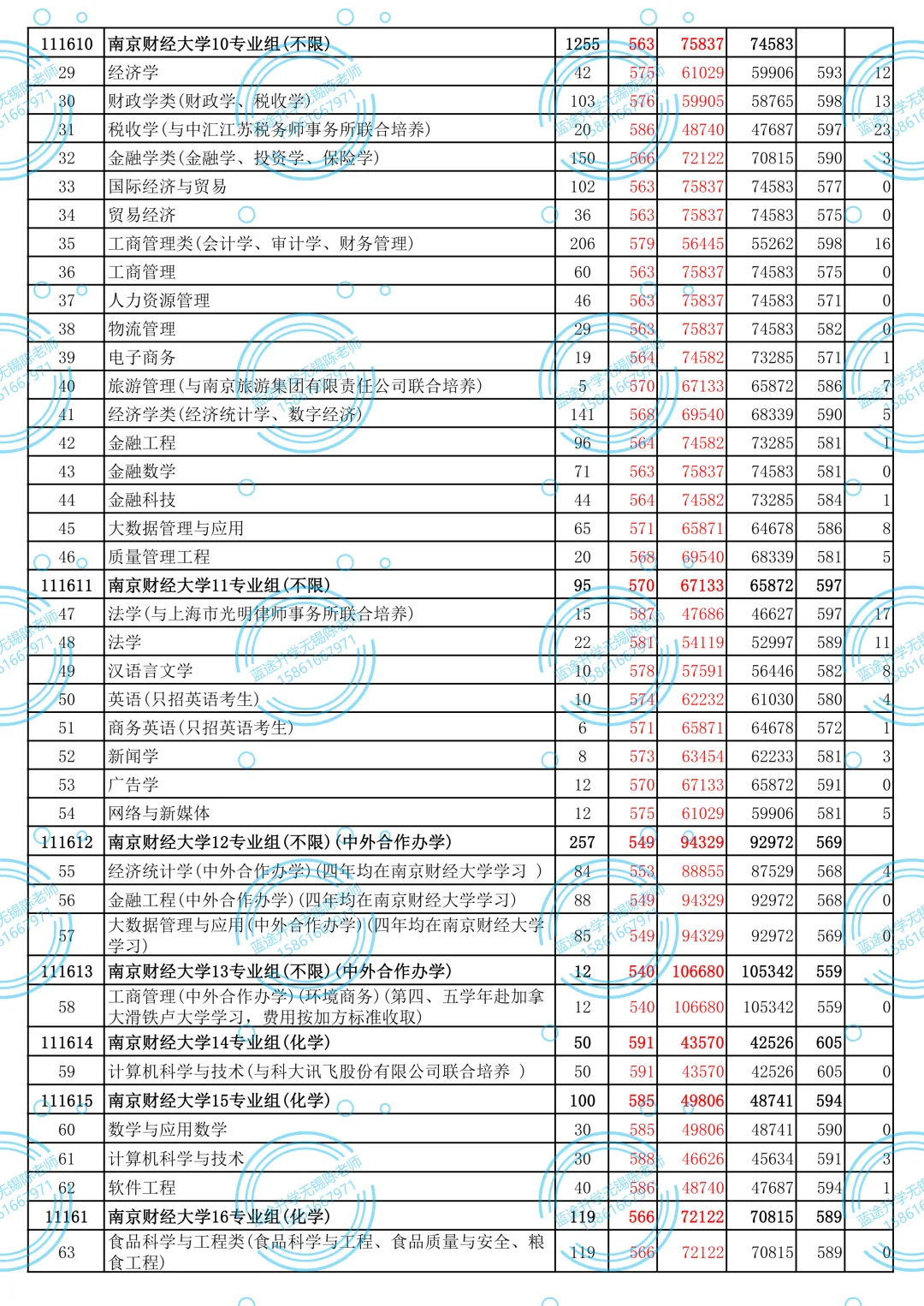 南京财经大学2024年江苏省普通类本科批次各专业录取分数线