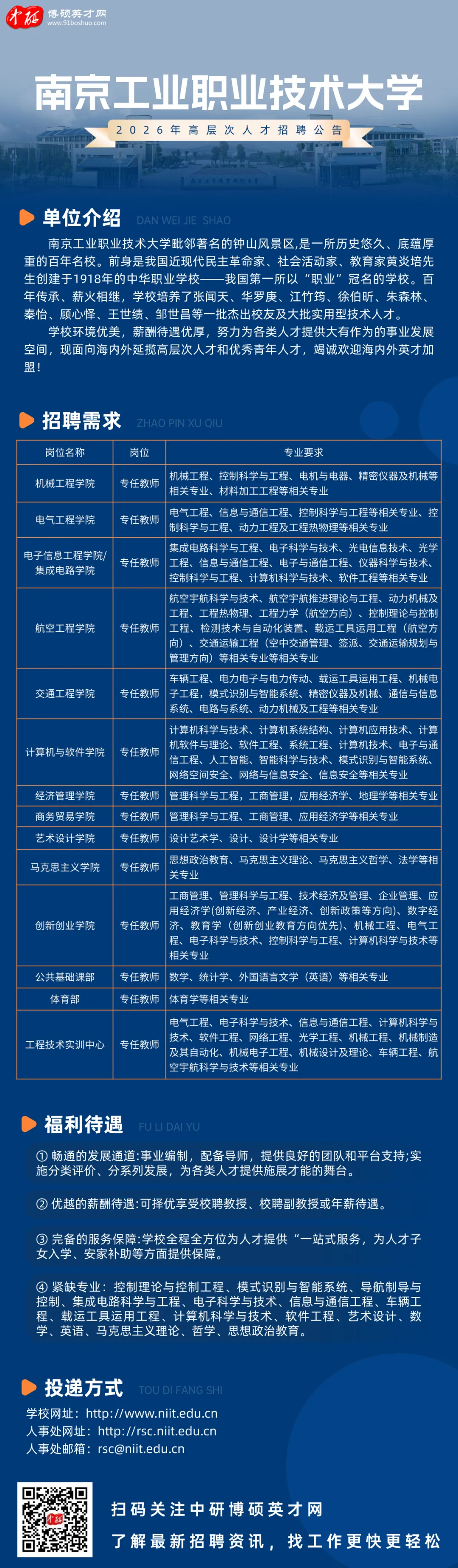>南京工业职业技术大学2026年高层次人才招聘公告