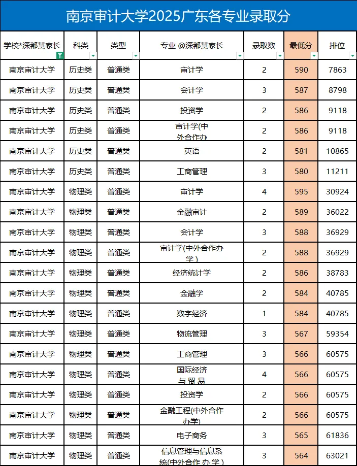 南京审计大学2025年广东各专业录取分