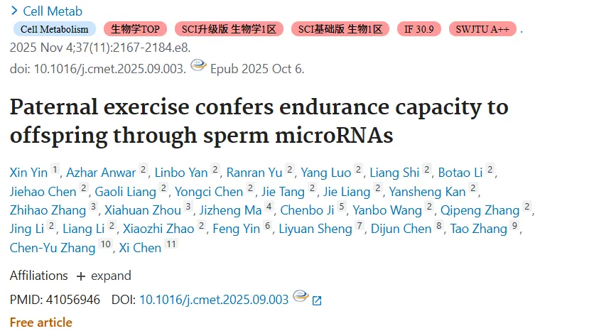 IF 30.9!南京大学院长领衔!“国自然”创新选题登《cell》子刊!父爱运动,子代天生强!