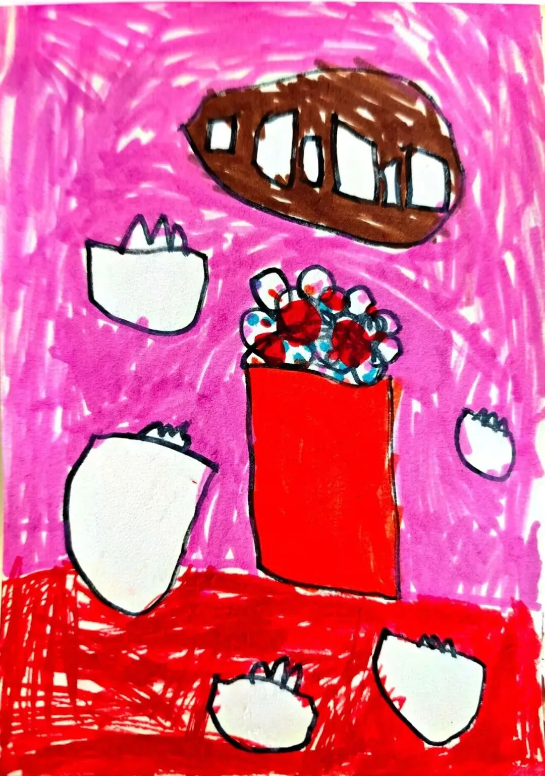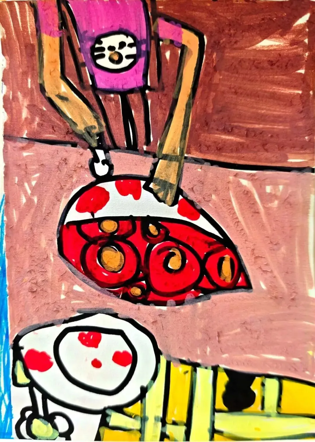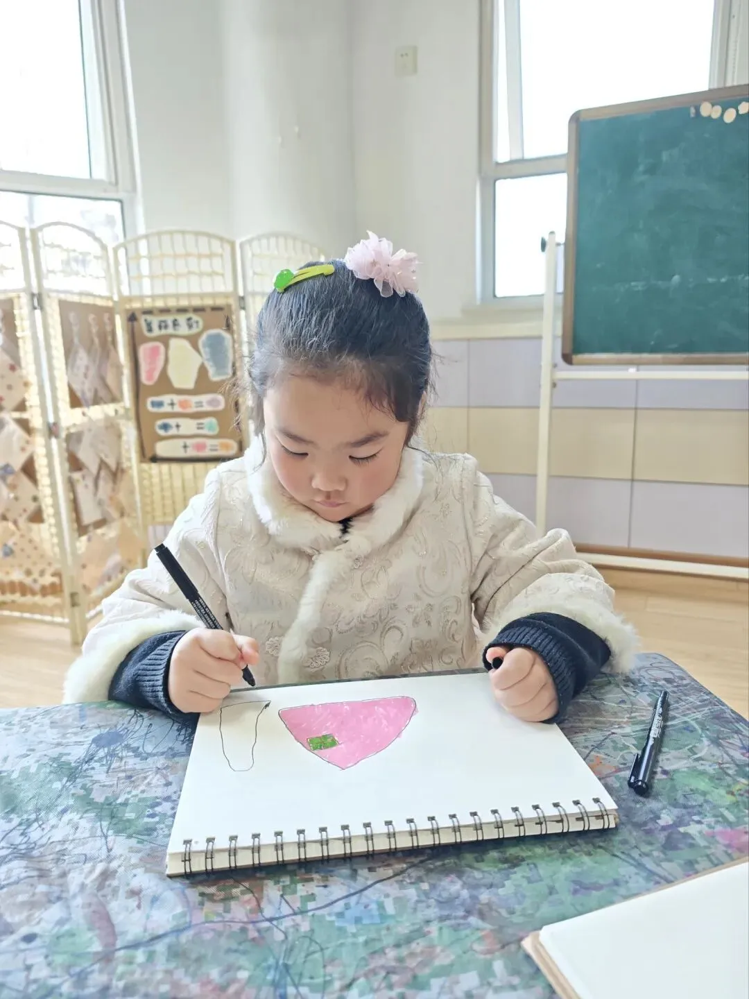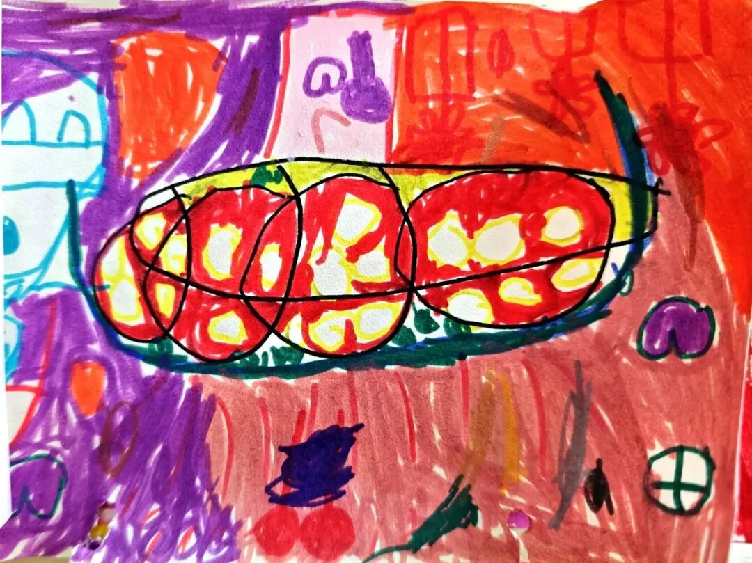 说起美食,孩子们总有说不完的话题,兴致勃勃地和小伙伴分享着自己的生活体验与舌尖记忆,拿起画笔生动描绘出鸭血粉丝汤、梅花糕、牛肉锅贴、冰糖蜜藕等独居金陵特色的传统小吃。