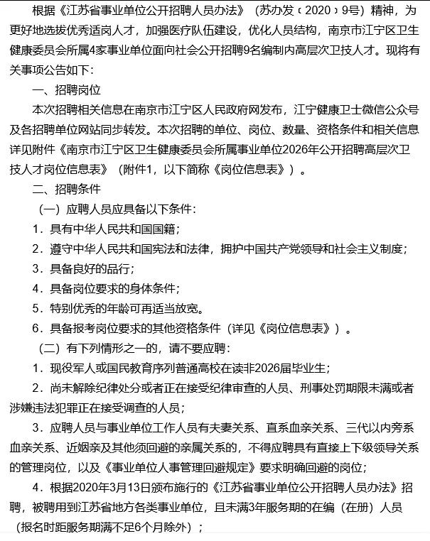 2.南京市江宁区卫生健康委员会所属事业单位