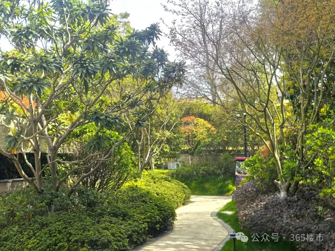 小区彩化率极高。 放眼望去,不只是绿,而是有层次的、丰富的色彩。深绿、浅绿、鹅黄、赭红,在这个季节里交错叠映。