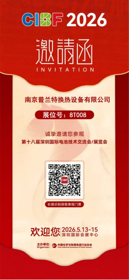 CIBF2026 深圳国际电池展即将启幕,南京普兰特换热设备有限公司特邀您莅临参观!