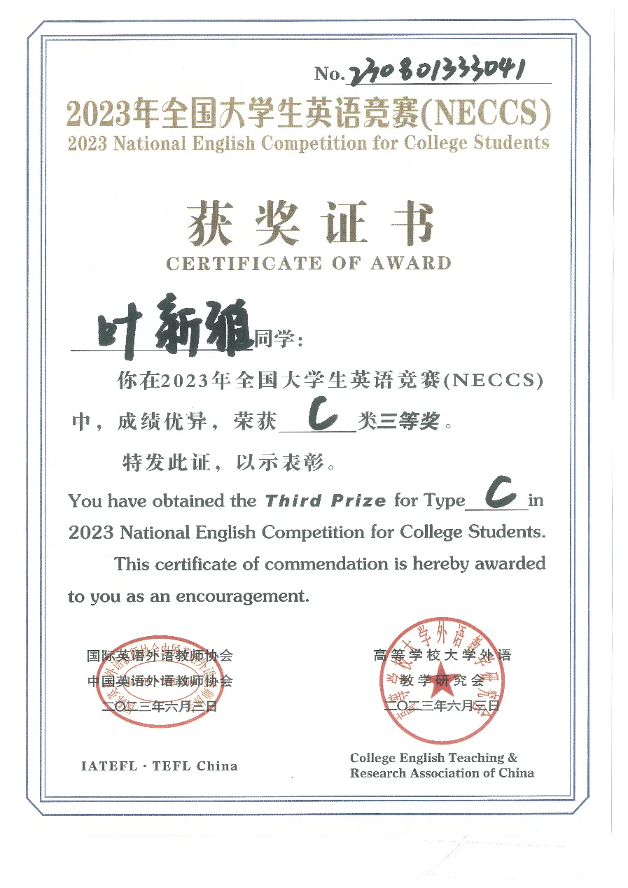 新芽牢牢扎根后,便要向上生长。积累了丰富的专业知识后,叶新雅主动拓宽视野,积极参与竞赛、科研。