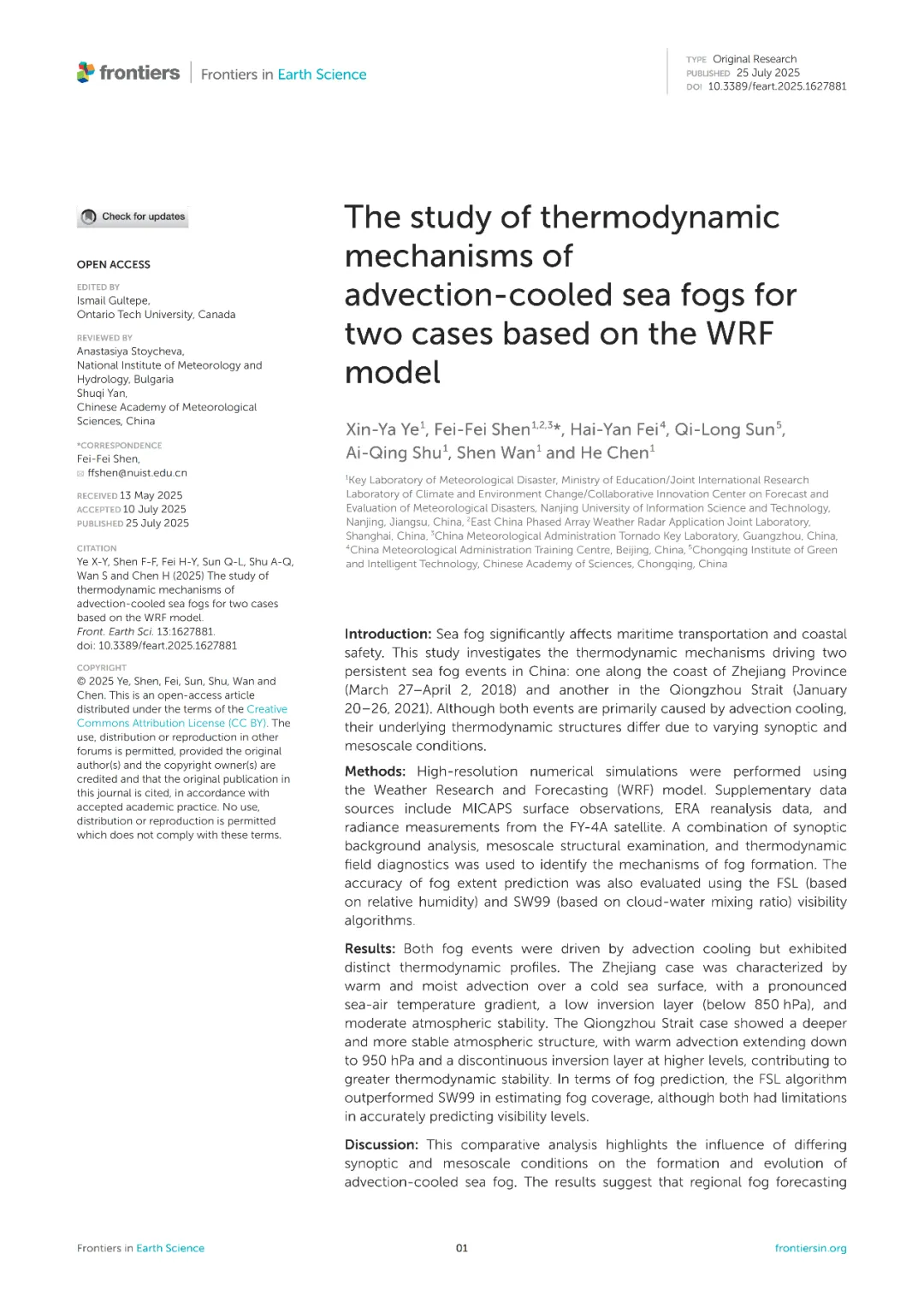 大二伊始,叶新雅推开了科研的大门。在大气科学学院沈菲菲副教授的指引下,她作为负责人挑起省级大创项目的重担。面对风云四号卫星的海量数据,她和团队确立了“利用机器学习技术构建海雾预报模型”的目标。这段经历不仅让她接触到了卫星资料同化等核心技术,更让她出色的动手实践能力脱颖而出,为后续科研奠定了基础。