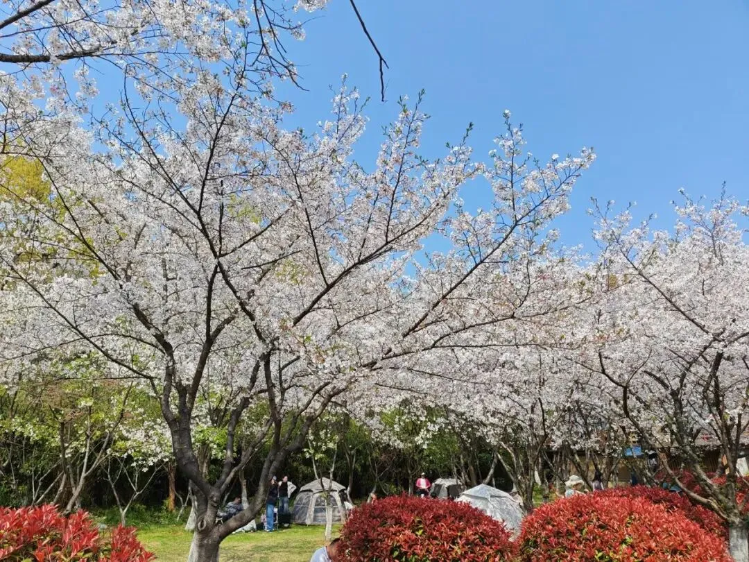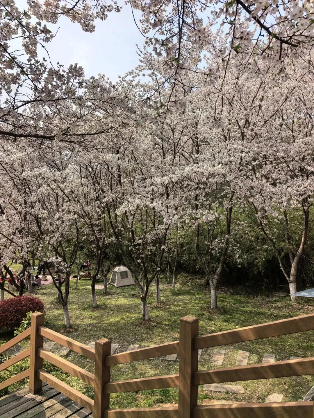 必拍点位:樱花林中的木楼梯、湖边的樱花倒影、露营地的樱花与野餐垫,还有山顶观景台可以远眺城市天际线与樱花林同框,适合广角镜头!