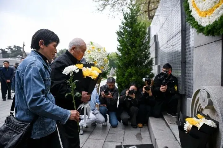 4月3日,南京大屠杀死难者清明祭仪式在侵华日军南京大屠杀遇难同胞纪念馆遇难者名单墙前举行。南京大屠杀幸存者、幸存者后代和死难者遗属代表,以及青少年代表手持菊花肃立,祭奠89年前遇难的亲人和同胞。忆及1937年那段国破家亡的至暗岁月,92岁高龄的南京大屠杀幸存者刘民生说:“89年过去了,我一天都忘不了!我不仅要纪念逝去的同胞,还要把这段历史讲给后人听。希望每一个中国人都铭记日本军国主义的侵略罪行,永远不忘历史。”
