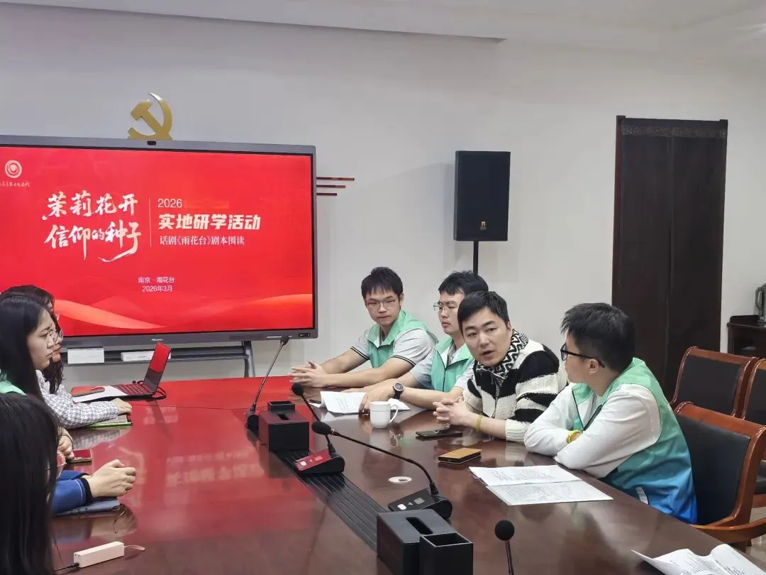 作为研学核心实践环节,话剧《雨花台》剧本围读让红色故事在青春演绎中“活”起来。来自各高校的学生演员代表齐聚一堂,分角色开启沉浸式剧本围读,逐句品味台词内涵、深挖人物精神内核。各校代表依次结合雨花英烈事迹与精神,联系自身生活学习分享感悟,交流表演思路与情感把握。南京市话剧团专业演员、雨花台烈士纪念馆工作人员也现场交流发言,开展互动问答并进行总结指导。