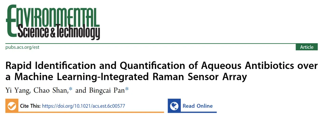 Yang, Y., Shan, C., & Pan, B. (2026). Rapid identification and quantification of aqueous antibiotics over a machine learning‑integrated Raman sensor array. Environmental Science & Technology. https://doi.org/10.1021/acs.est.6c00577