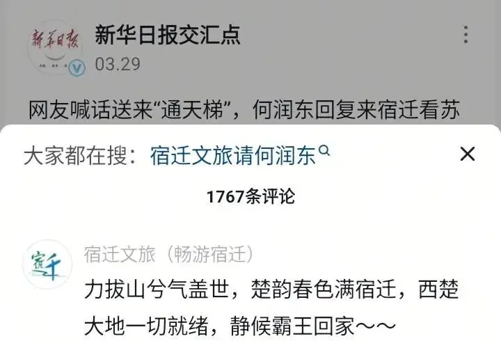 去年,因为苏超各地文旅间的喊话,我掉进了苏超的坑,一直追到大结局。 2026年,苏超又开始了,本来我很淡定,想着今年肯定不会掉坑了,因为我不爱踢足球,也不爱看足球赛。谁知,感觉又要掉坑了 这几天一直在刷何润东的项羽视频,宿迁文旅也已发出“静候霸王回家”。特地找到了原评论