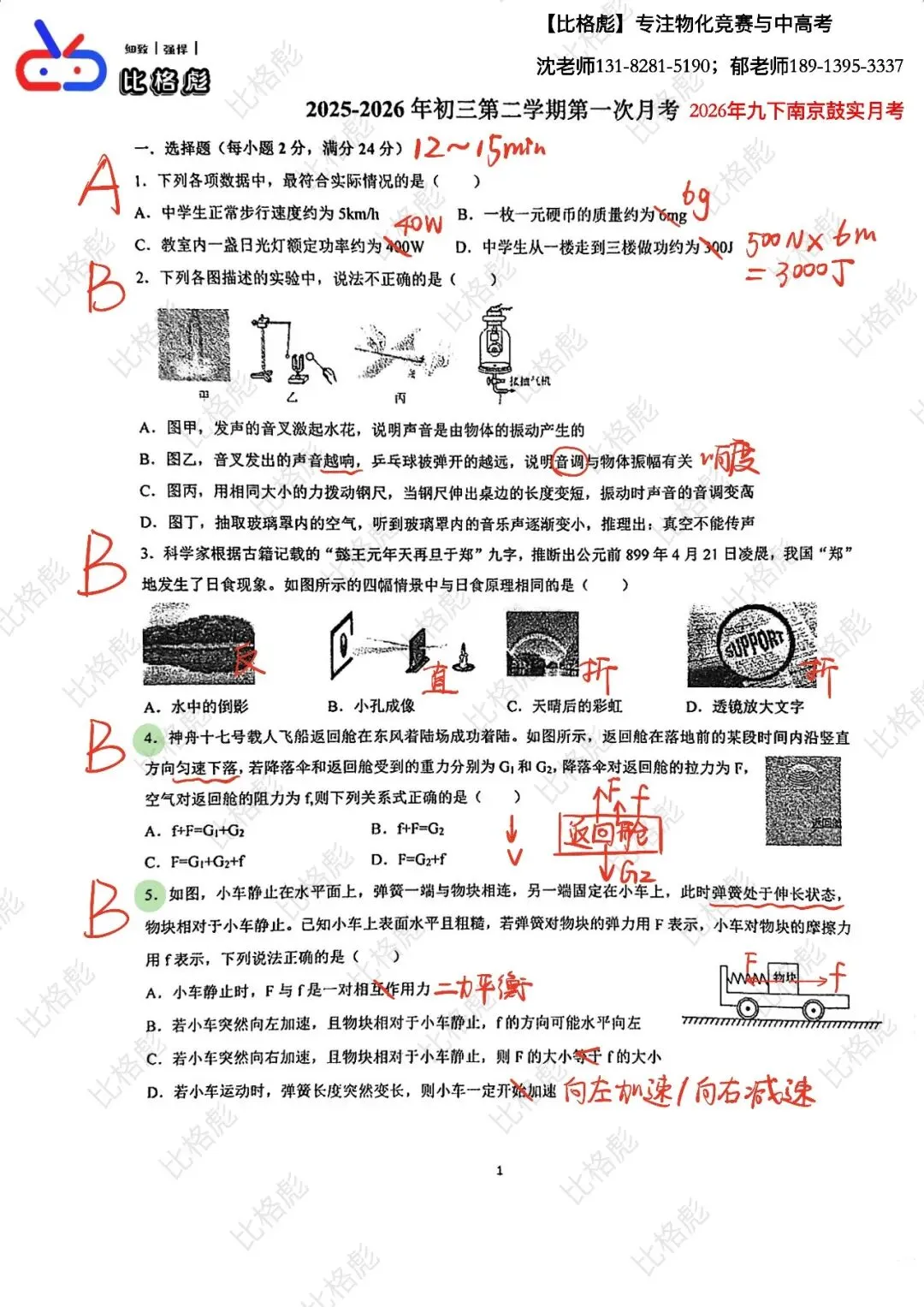【物理月考】2026年九下南京鼓楼实验(解析).pdf