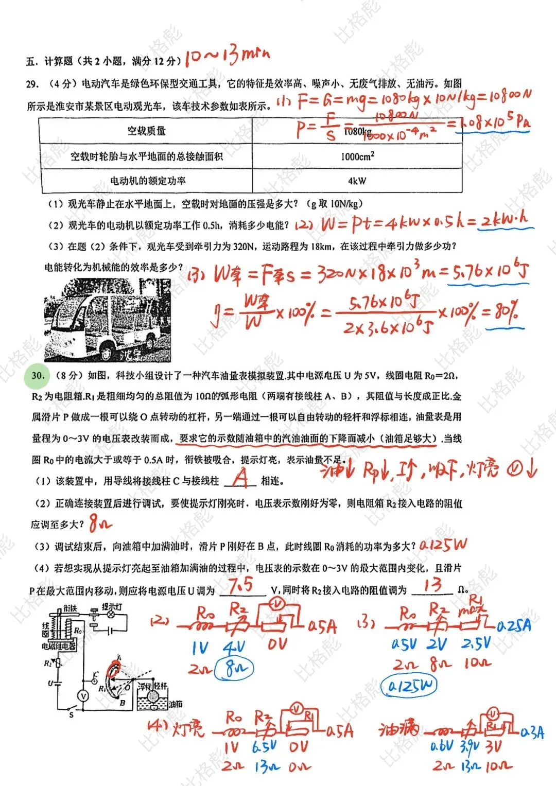 :电学的综合计算,非常经典的南京考法,最后一小问在历年的南京一模真题里出现过多次(低胎压自动充气电路),虽然不难,但是想要思路清晰并准确得到所有的分数,挺考验孩子呢,时间不要做太久;