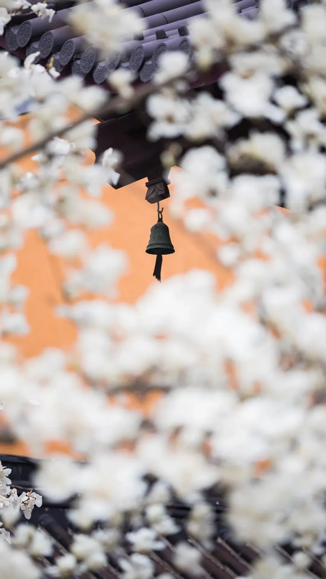 1️⃣灵谷寺:灵谷寺大雄宝殿前,有一株千年的玉兰,古寺的黄墙黛瓦间,玉兰静静绽放,渲染着千年古刹的幽静与禅意。