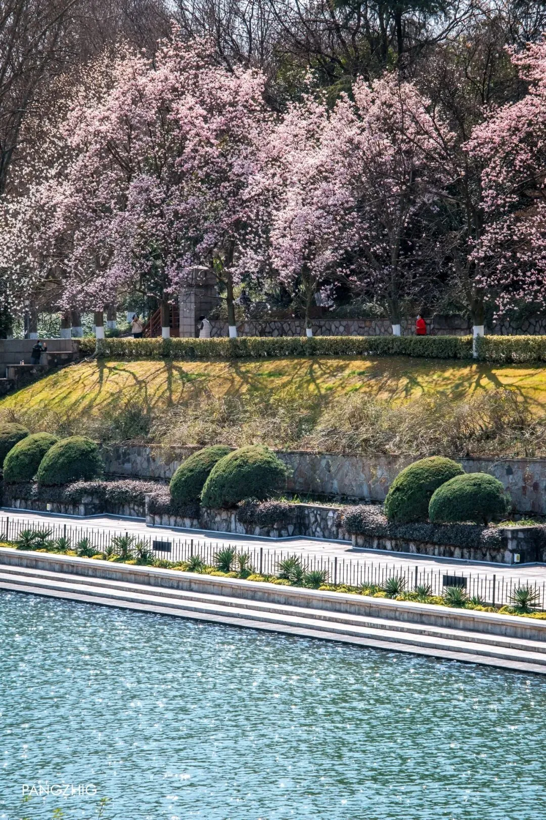 4️⃣雨花台:在雨花台烈士陵园纪念碑倒影池两侧,伫立着56株宝华玉兰。为什么是56株?它们象征着56个民族,玉兰的花语也正是“报恩”。