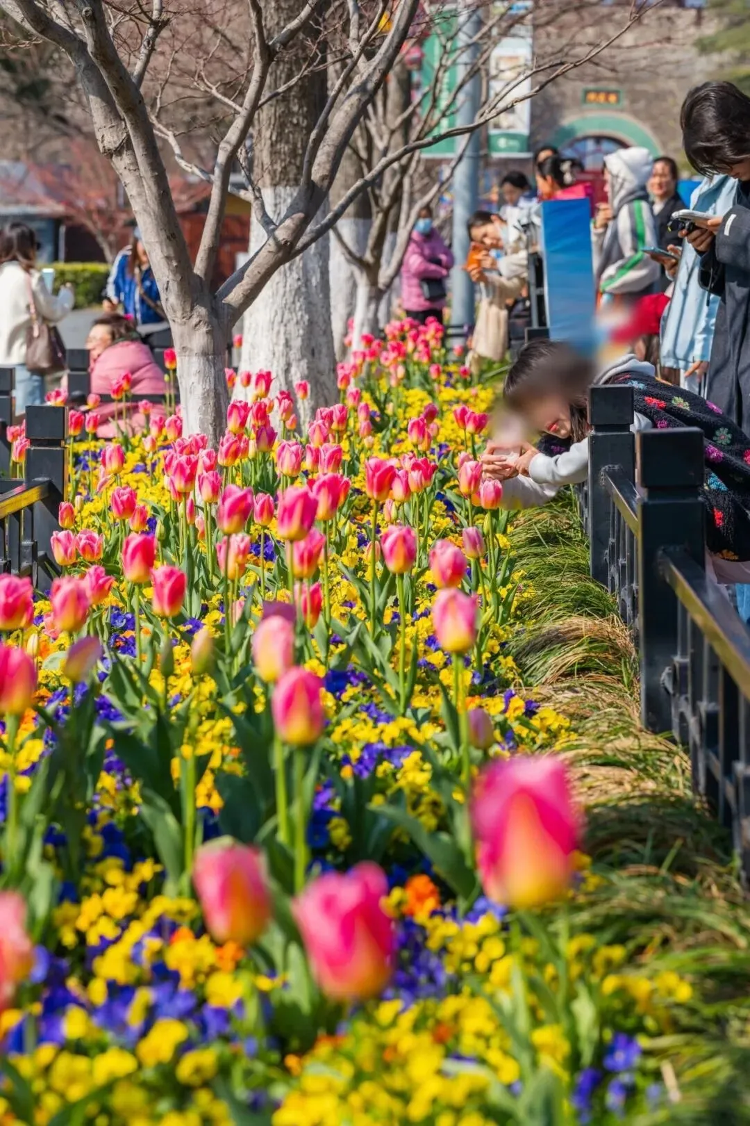 2️⃣玄武湖:湖边郁金香,浪漫值拉满!大片大片的郁金香肆意绽放,粉色的花朵像是被春天打翻的调色盘,浪漫氛围拉满。