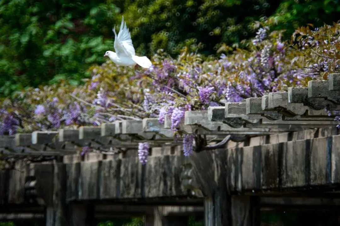2️⃣音乐台:鸽子飞过紫藤花,画面太美!南京有紫藤花的地方很多,唯独音乐台集齐森林、建筑、白鸽、音乐喷泉,清风几许,花香扑鼻,白鸽纷飞,山林环绕,超美。