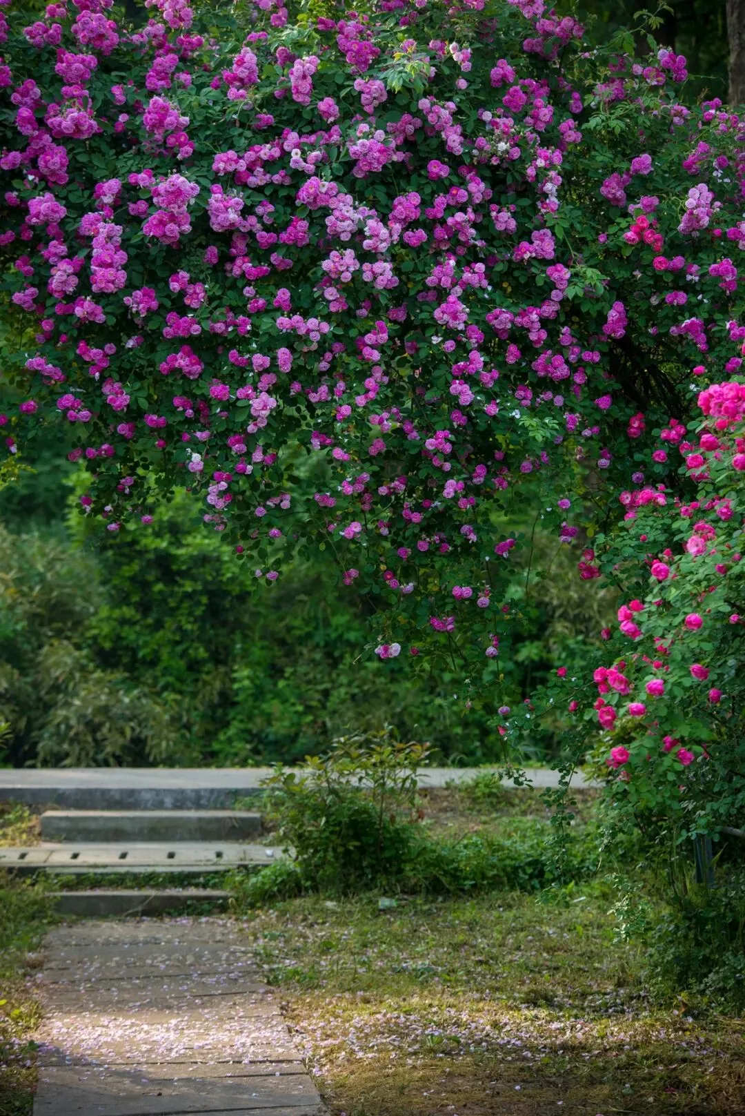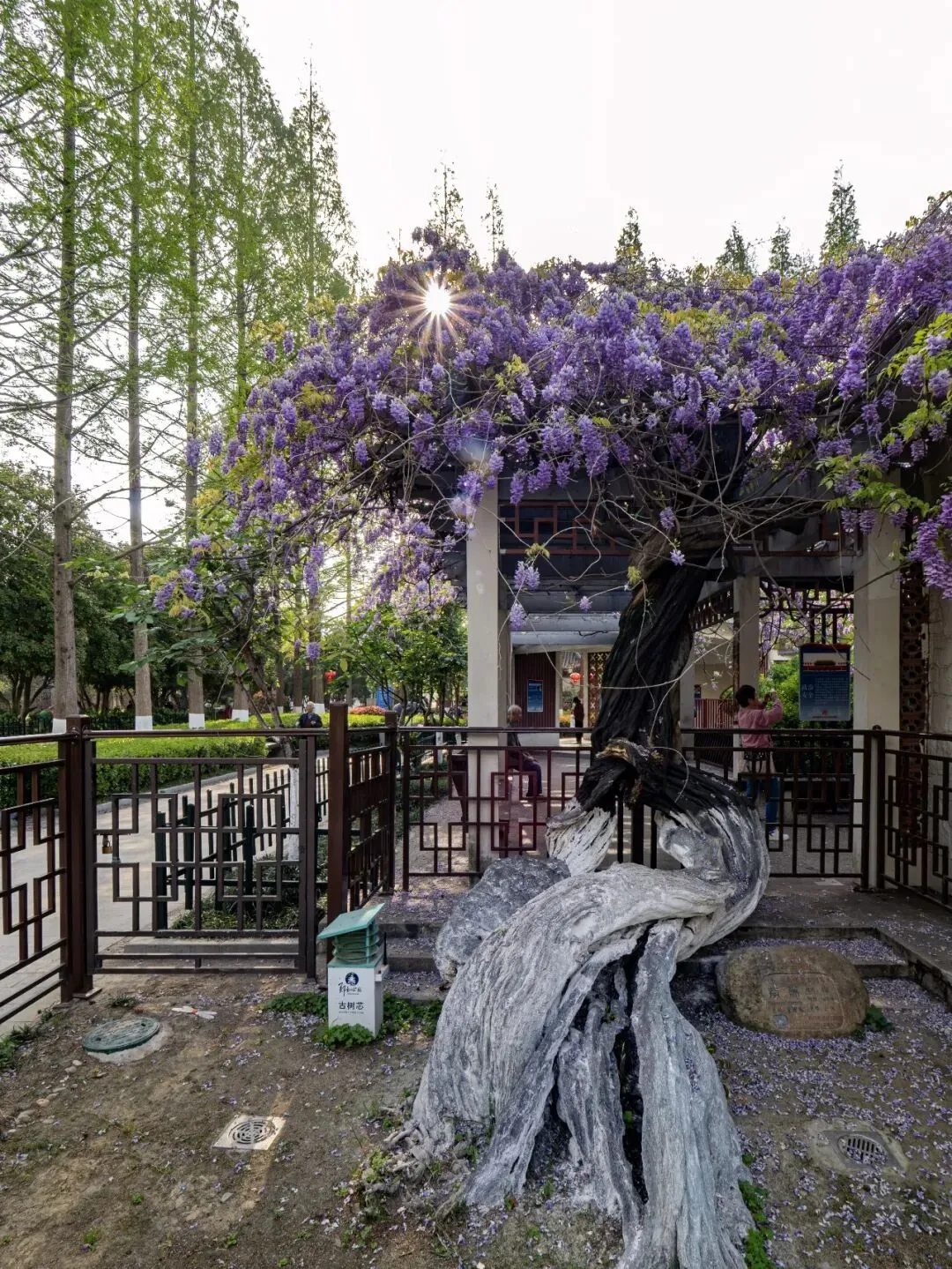 3️⃣古林公园:老紫藤架,花开如盖!隐藏在市区里的紫藤秘境,满架紫藤如瀑,是春天最温柔的告白。4️⃣郑和公园:安静小众,适合慢慢逛!当人们追逐着网红花海,郑和公园的古紫藤,已静静开了600多个春秋,虬曲的枝干盘绕着石栏,垂下满架淡紫色的时光,这是永乐年间留下的,一场永不落幕的春宴。1️⃣颐和路:四月的风一吹,颐和路的蔷薇便织成了流动的河,转角老洋房推开窗就是花海。文艺、浪漫、蔷薇花,这里就是南京颐和路~