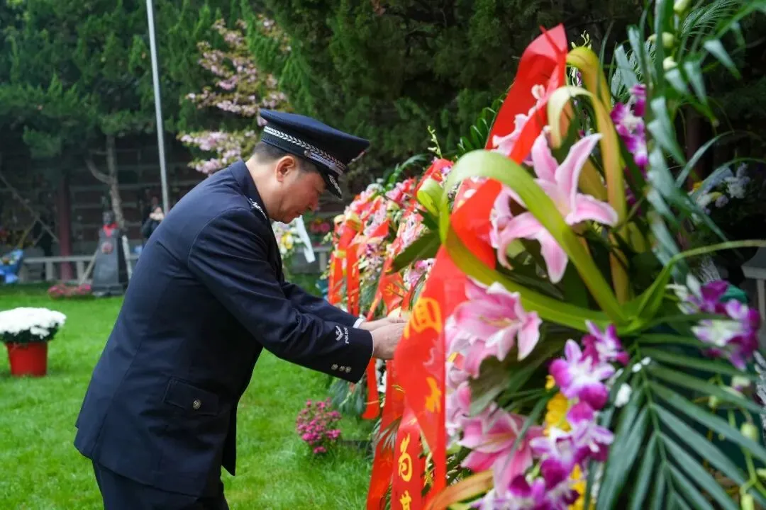 活动现场庄严肃穆,周光裕、薛爱苹、于葆林等见义勇为烈士的雕像巍然矗立。全体人员整齐列队,神情凝重。市见义勇为基金会理事长孙建友、市公安局政治部主任仇文庆缓步上前,分别向英烈雕像敬献花篮,并俯身仔细整理缎带。随后,参会领导与代表依次上前,手持洁白花枝,轻轻摆放在英烈雕像前,以简约而庄重的方式表达对英雄的追思与敬仰。