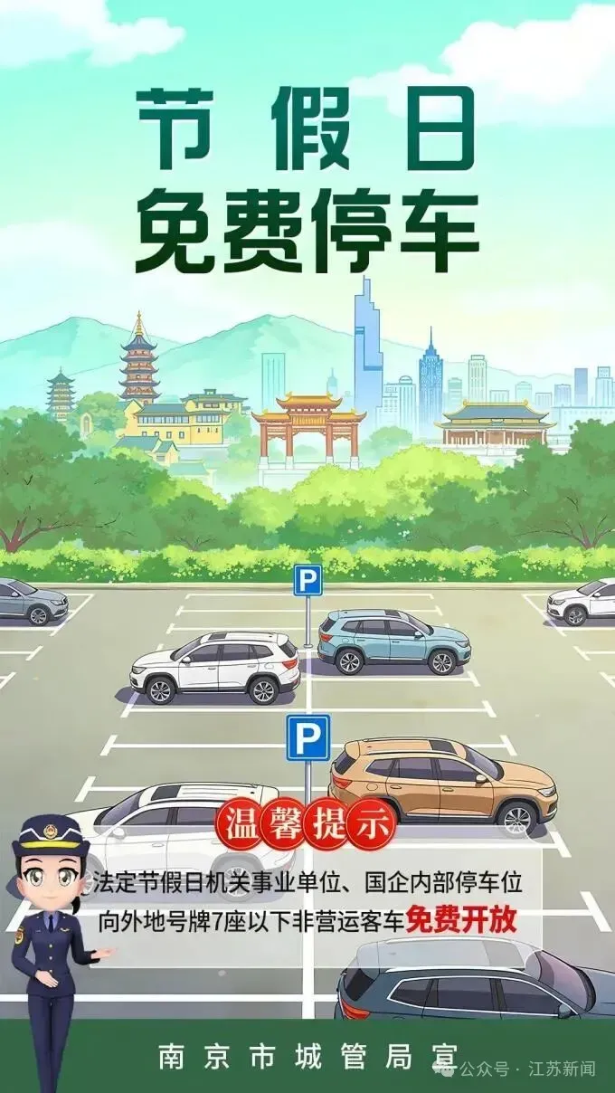 同时,南京也明确,今后将在法定节假日期间,推动停车资源全天24小时免费开放,持续推出更多惠民利民举措。