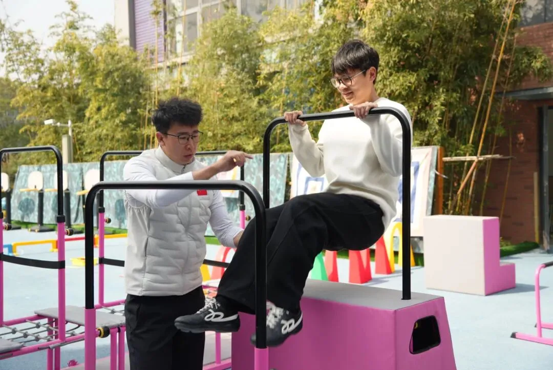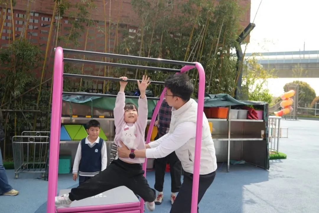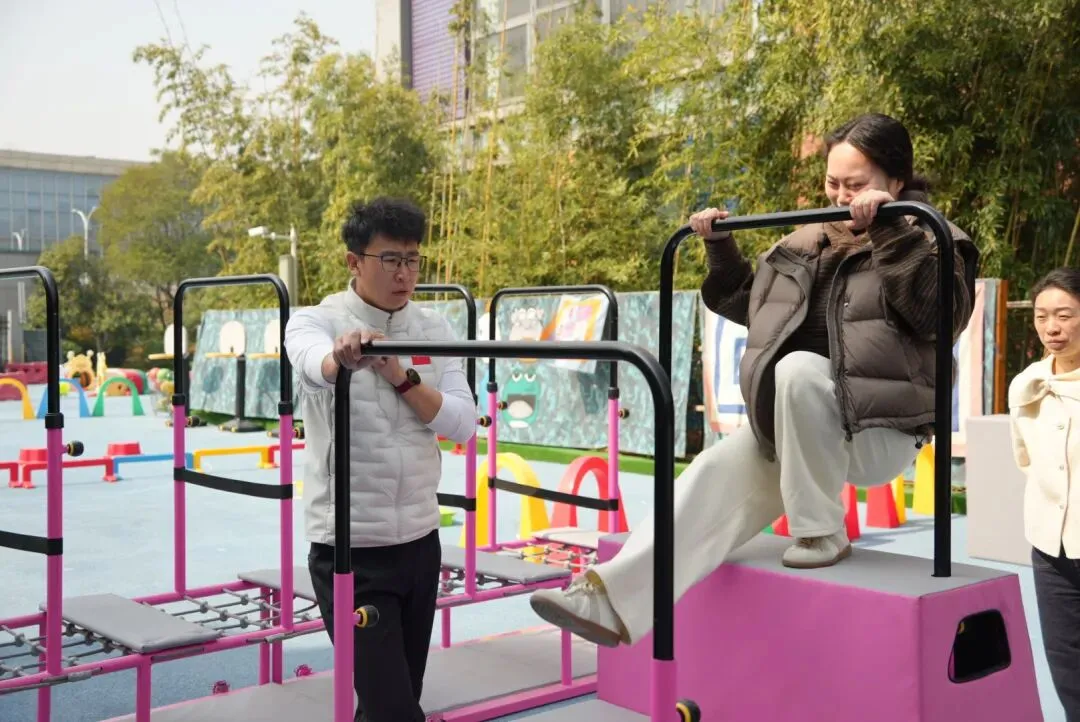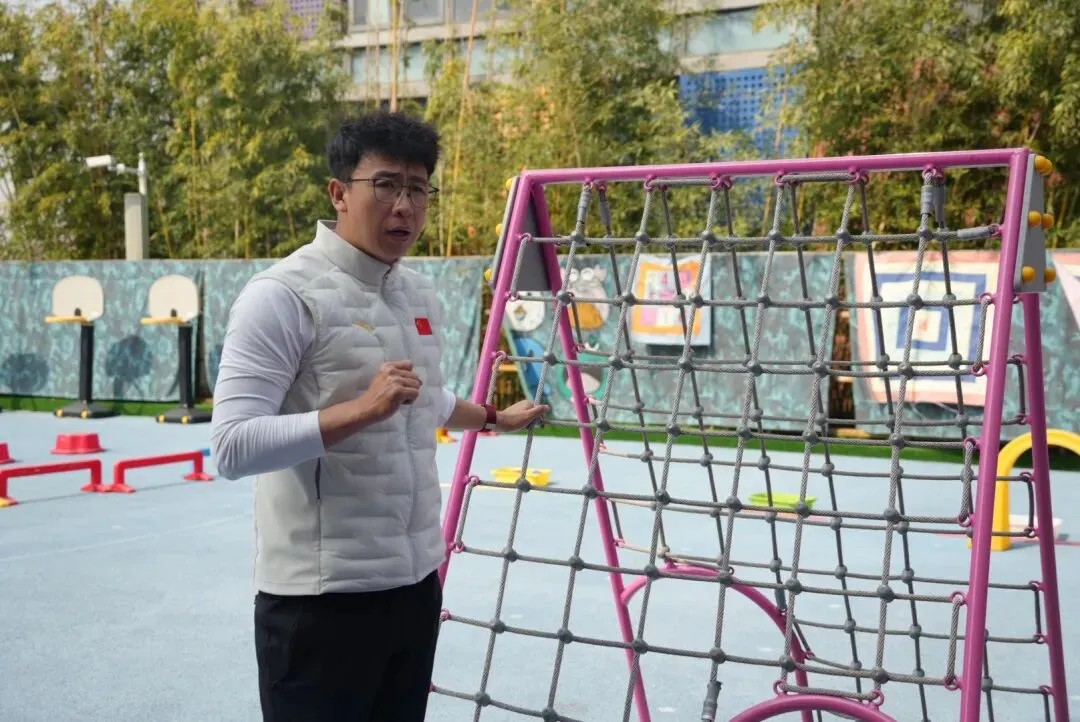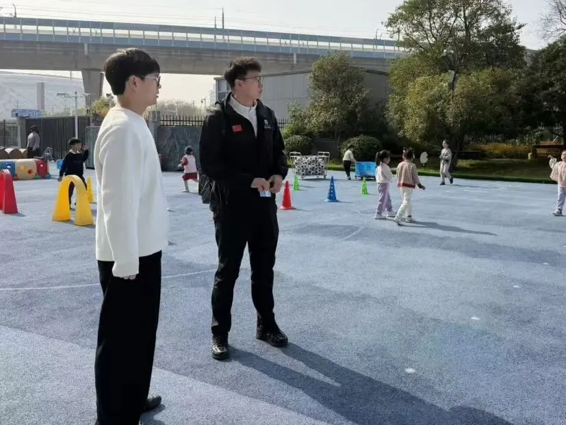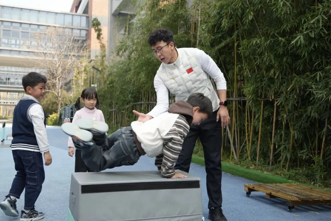 李教练现场观摩了晨间户外混龄体锻活动,肯定了老师们在器材组合、运动路线及难度层次性方面的设计,认为对提升幼儿运动能力有积极作用。同时,李教练从专业角度指出:器材组合的合理性、路线的运动连贯性还可优化,以更好地促进幼儿平衡性和协调性的发展。