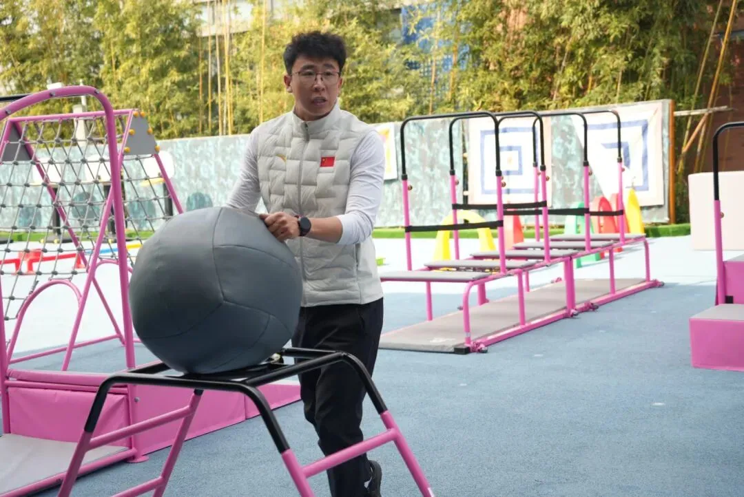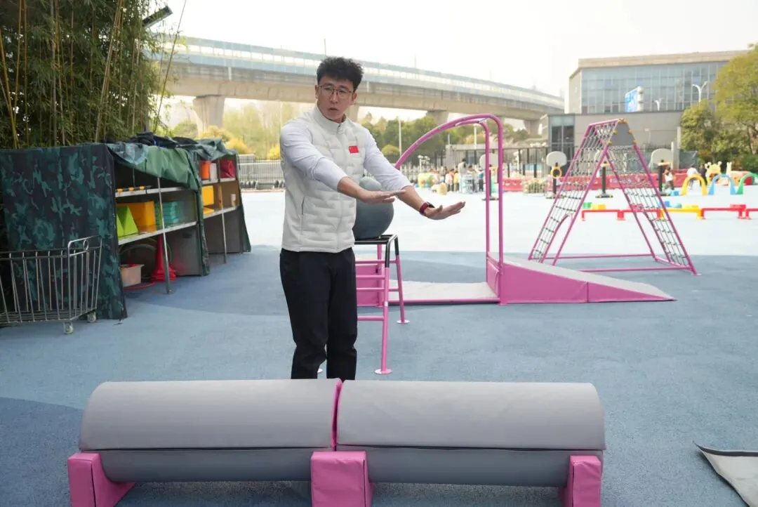 结合不同年龄段幼儿的特点,李教练现场调整了户外体锻路线,并向老师们详细讲解了各路线的器械组合与摆放思路,进一步优化了体能区场地。