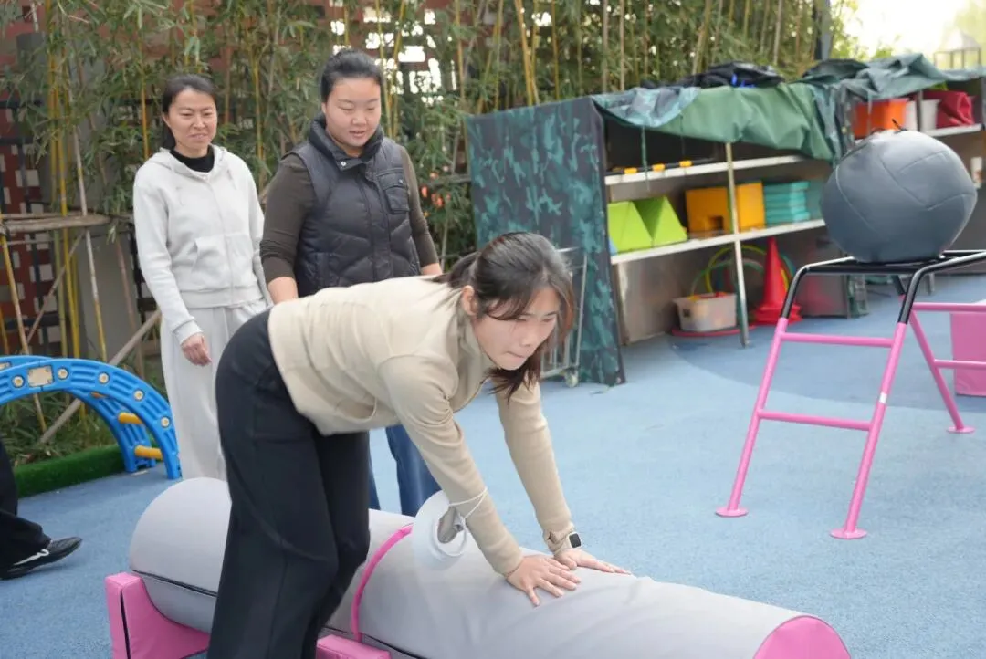 老师们通过学习不同器械的搭配逻辑与层次设计,拓宽了场地布置的思路,从而为幼儿打造更科学、更富挑战性的体能循环路线,促进幼儿在跑、跳、攀爬、平衡等方面获得全面发展。