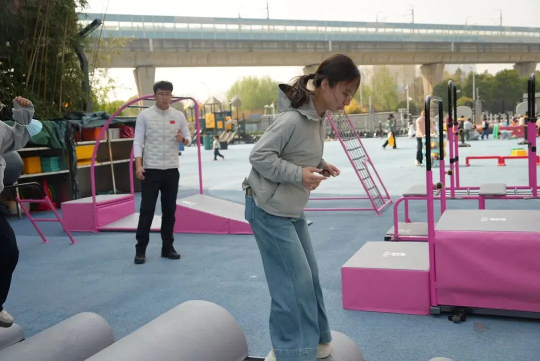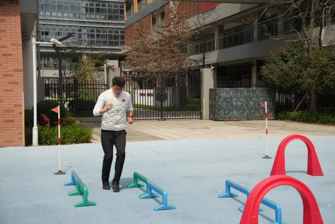 为了更准确地指导幼儿、切身体会每个动作的要领与难点,老师们也轮流进行了实操练习,亲身体验跑酷的乐趣和挑战。