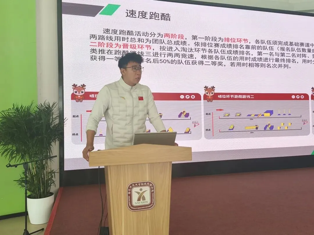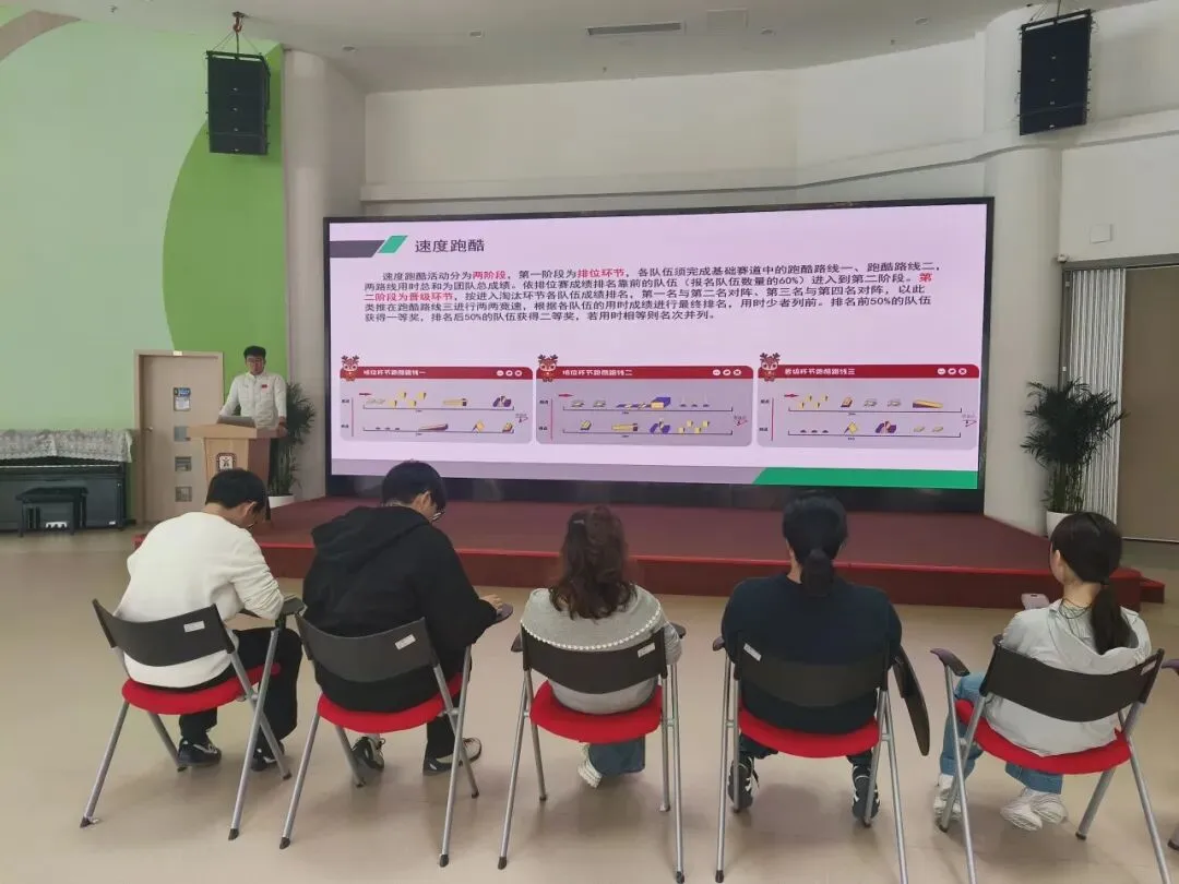 李教练围绕本次幼儿体育嘉年华的两大项目:速度跑酷和技能闯关,为老师们详细解读了竞赛规程。