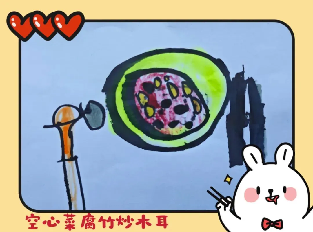 午餐:大米饭、杏鲍菇烧梅花肉、空心菜腐竹炒木耳、萝卜牛尾汤