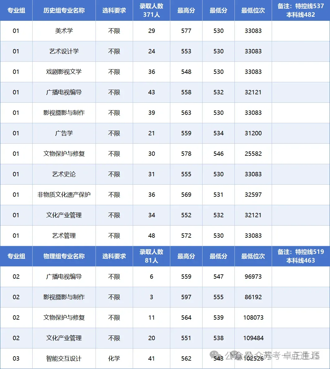 南京艺术学院 2025年各专业录取分数与位次