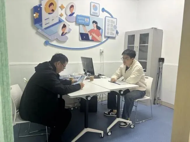 座谈会后,南京兰埔成新材料有限公司开展了学生招聘的现场面试活动。