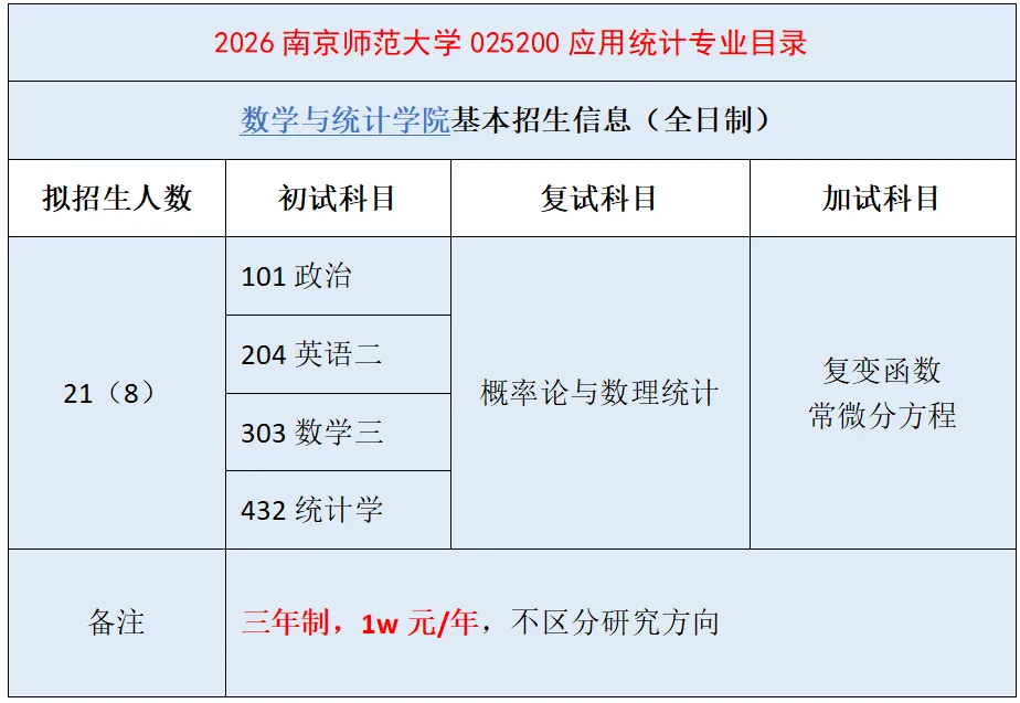 2026南京师范大学实际推免录取9人(25年录取8人),按照2026专业目录的招生计划,剩余统考名额约为21-9=12人。