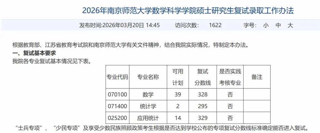 如期扩招!2026南京师范大学复试线329分,一志愿上线22人,拟录取14人