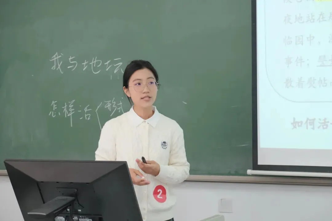 C组的选手们同样展现出了扎实的专业素养与创新意识。选手们对《谏太宗十思疏》《记念刘和珍君》等篇目进行了各具特色的演绎。讲授《乡土中国》的选手,创造性地引入《红楼梦》中“贾母丧葬事宜”这一情节,用学生熟悉的文学人物关系,具象化地阐释了“差序格局”这一核心社会学概念,实现了学术著作与文学经典的有机融合。在《谏太宗十思疏》的教学中,有同学设计了“朝堂演绎”环节,围绕“十思”展开对话与辨析,课堂形式新颖,富有创造性。更有选手在讲授《登高》时,以“杜甫为何而悲”为主问题,层层剥茧,从个人的“八重之悲”升华到家国情怀,情感饱满,极具感染力。