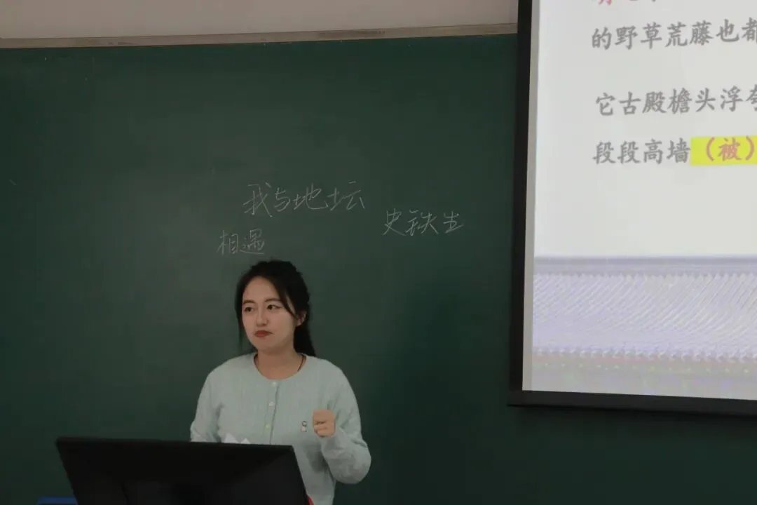 A组的选手们围绕《我与地坛》《祝福》《念奴娇·赤壁怀古》等篇目展开教学。选手们或从独特的叙事视角切入,或在文本细读中挖掘新意,展现了不俗的文本解读能力。在《祝福》的试讲中,有选手跳出传统的人物分析框架,敏锐地捕捉到鲁迅小说中叙事视角的“错位”艺术,虽以第一人称为叙述基调,却以第三人称讲述祥林嫂一生,由此剖析知识分子与底层民众之间那道无法逾越的鸿沟。在《念奴娇·赤壁怀古》的讲授中,选手在赏析词作本身的基础上引入历史地理的考证,探讨“真假赤壁”的文学价值,引导学生理解文学“虚”与“实”的辩证关系。而讲授《我与地坛》的同学,则通过精妙的语言品读,带领学生感受史铁生如何在与地坛的“物我交融”中,完成生命的哲学思辨。