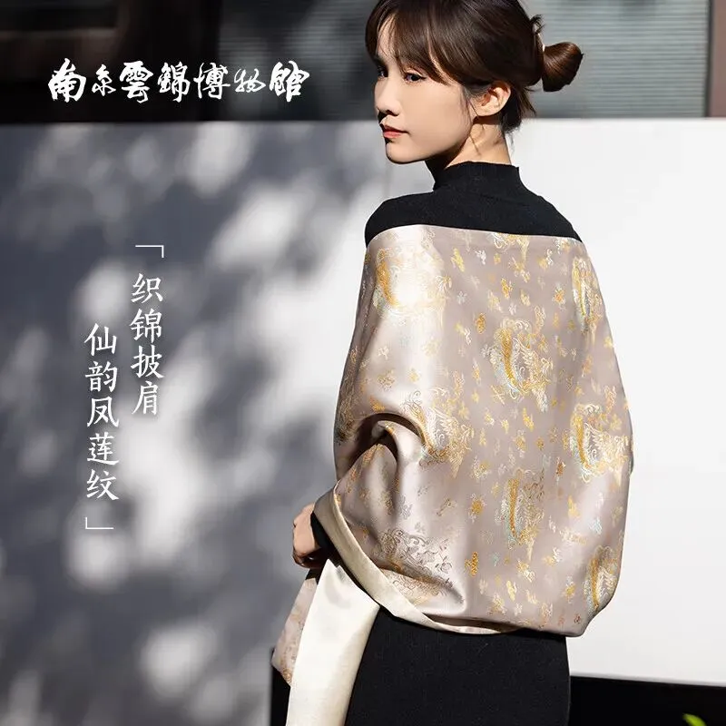 南京历代云锦博物馆南京云锦研究所仙韵凤莲织锦盘扣披肩100桑蚕丝中国风高端礼物 织锦披肩仙韵凤莲纹粉黄盘扣款...