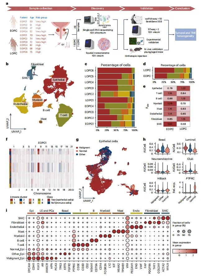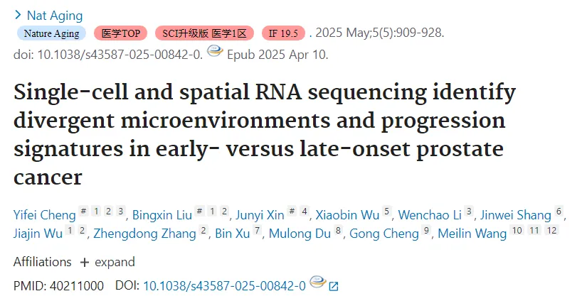 该研究通过单细胞与空间转录组测序,揭示早发型与晚发型前列腺癌在肿瘤微环境与转录程序上的显著差异。